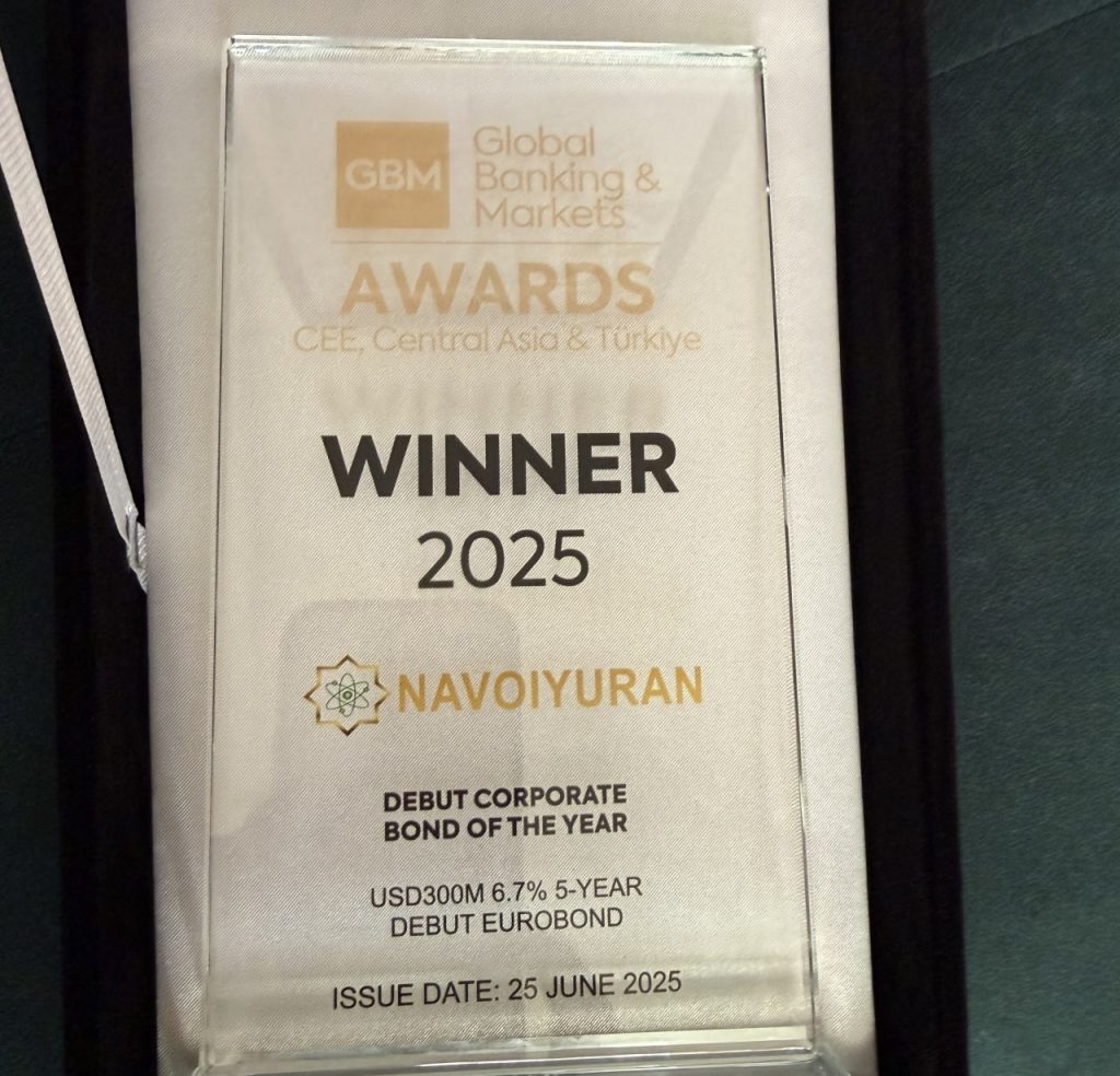 Государственное предприятие «Navoiyuran» было удостоено награды «Лучший дебютный корпоративный облигационный выпуск года» (“Debut Corporate Bond of the Year”) на церемонии награждения Global Banking & Markets AWARDS 2025.