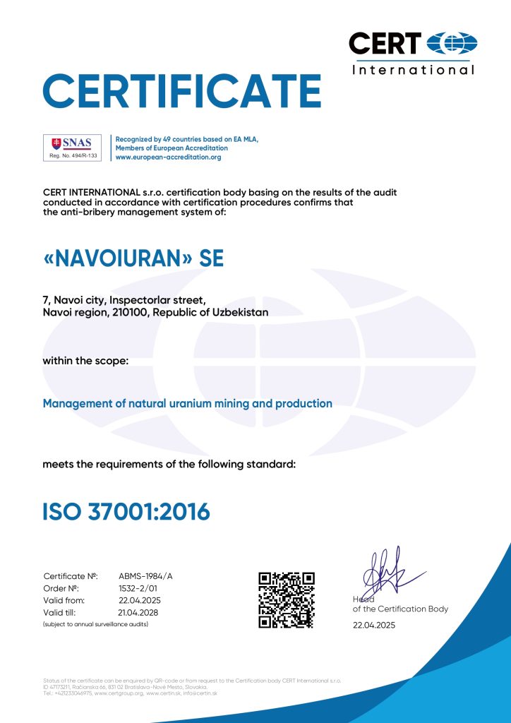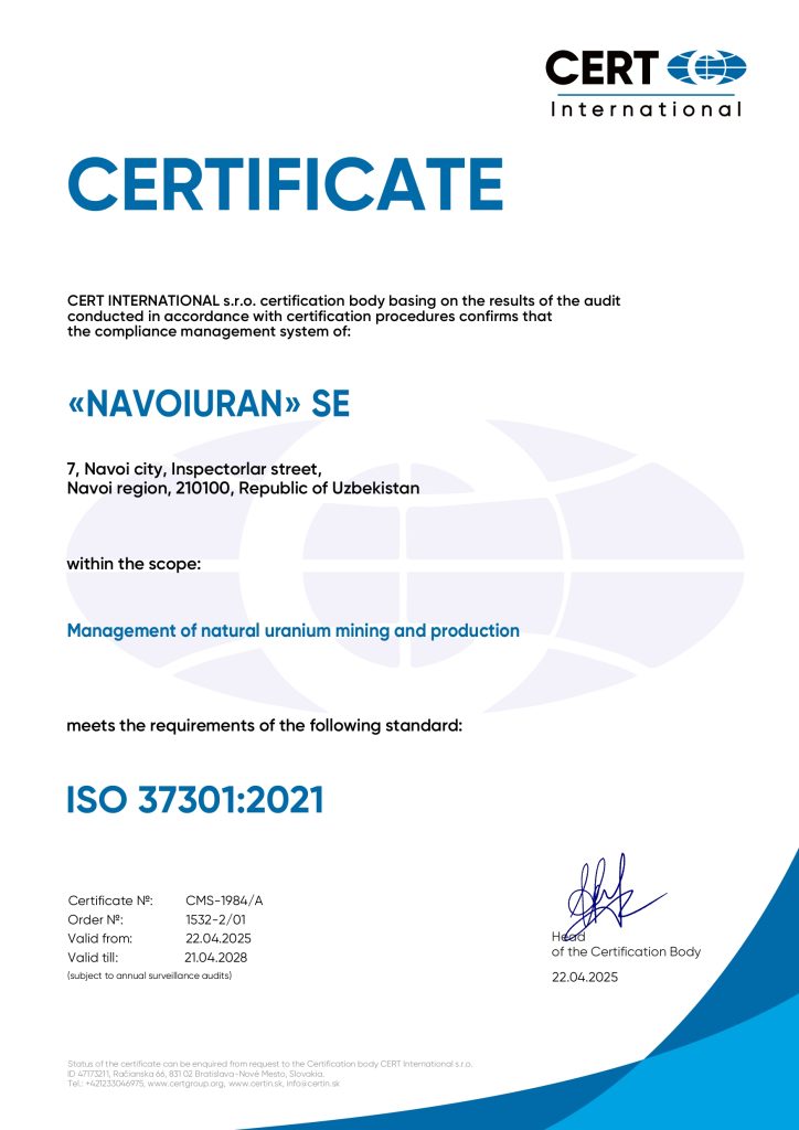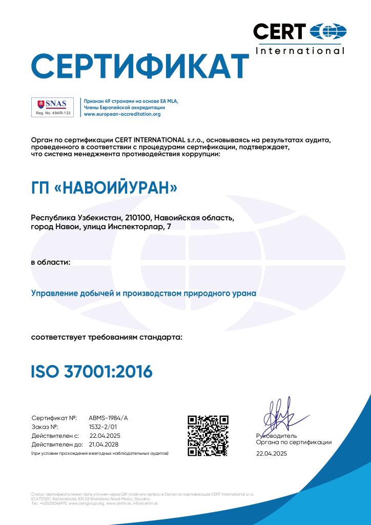 ГОСУДАРСТВЕННОЕ ПРЕДПРИЯТИЕ «НАВОИЙУРАН» ТАКЖЕ ПОЛУЧИЛО САМЫЙ ВЫСОКИЙ ПРЕСТИЖНЫЙ МЕЖДУНАРОДНЫЙ КРЕДИТНЫЙ РЕЙТИНГ В РЕСПУБЛИКЕ
