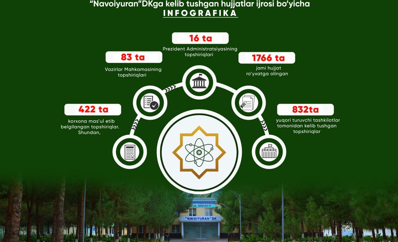 Aprel 7, 2026Aprel 7, 2026 Yangiliklar 2026-yil I-chorak davomida “ijro.gov.uz” elektron tizimi orqali “Navoiyuran” DKga kelib tushgan hujjatlar ijrosi bo‘yicha infografika